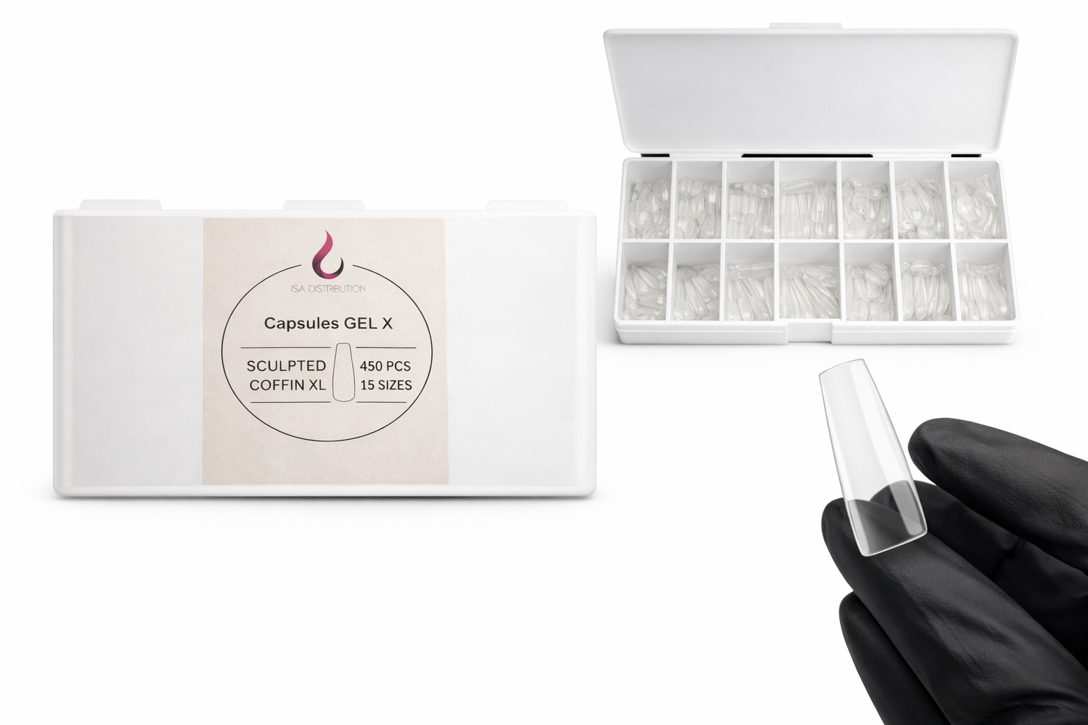 Capsules professionnelles transparentes idéales pour la technique Gel-x et pose américaine.