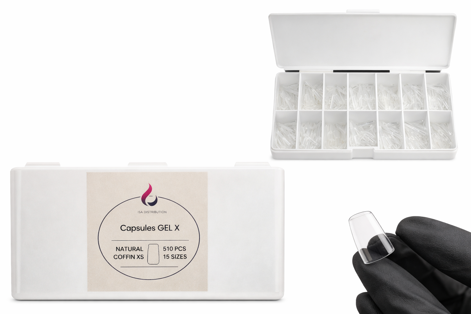 Capsules professionnelles transparentes idéales pour la technique Gel-x et pose américaine.