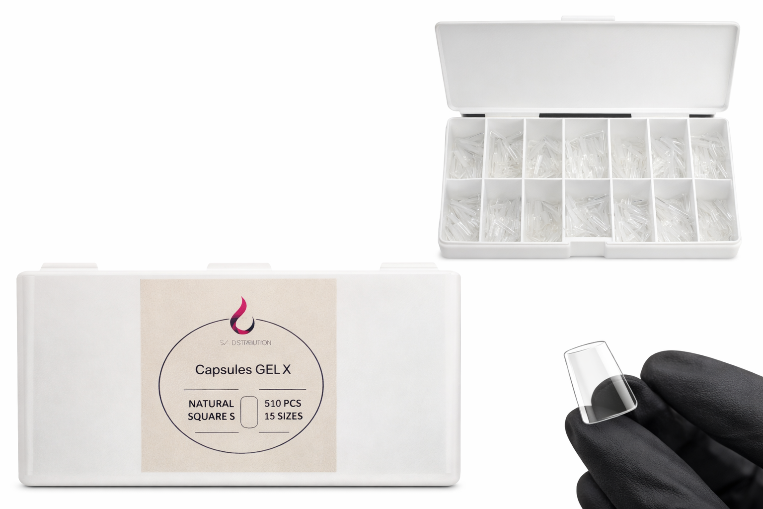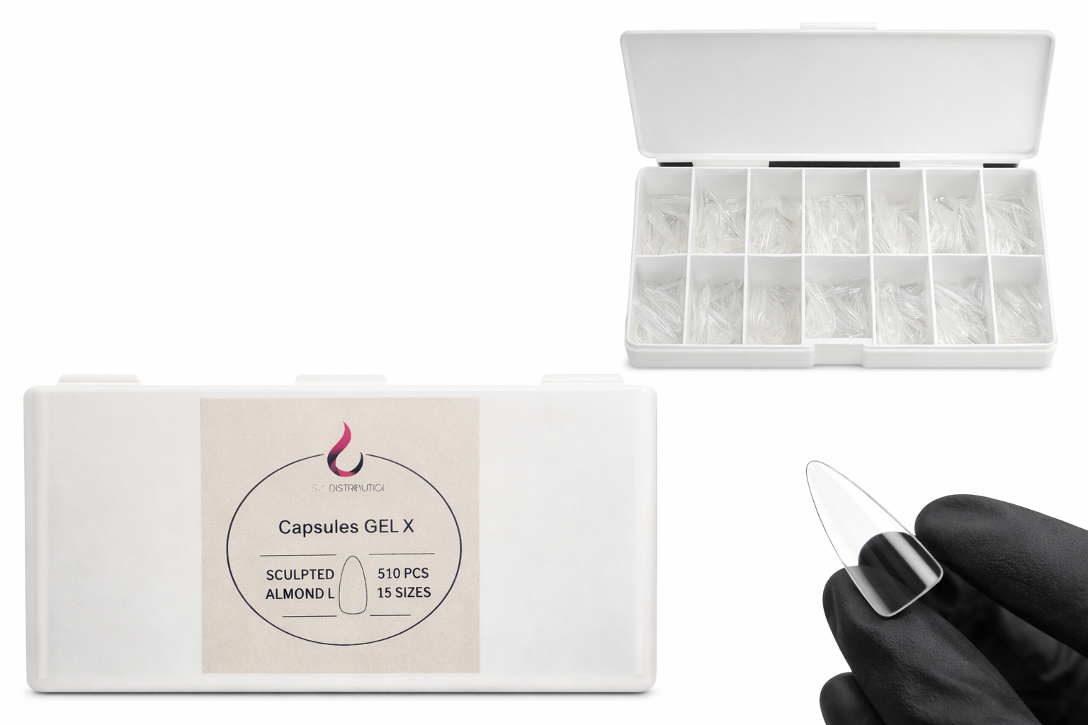 Capsules professionnelles transparentes idéales pour la technique Gel-x et pose américaine.