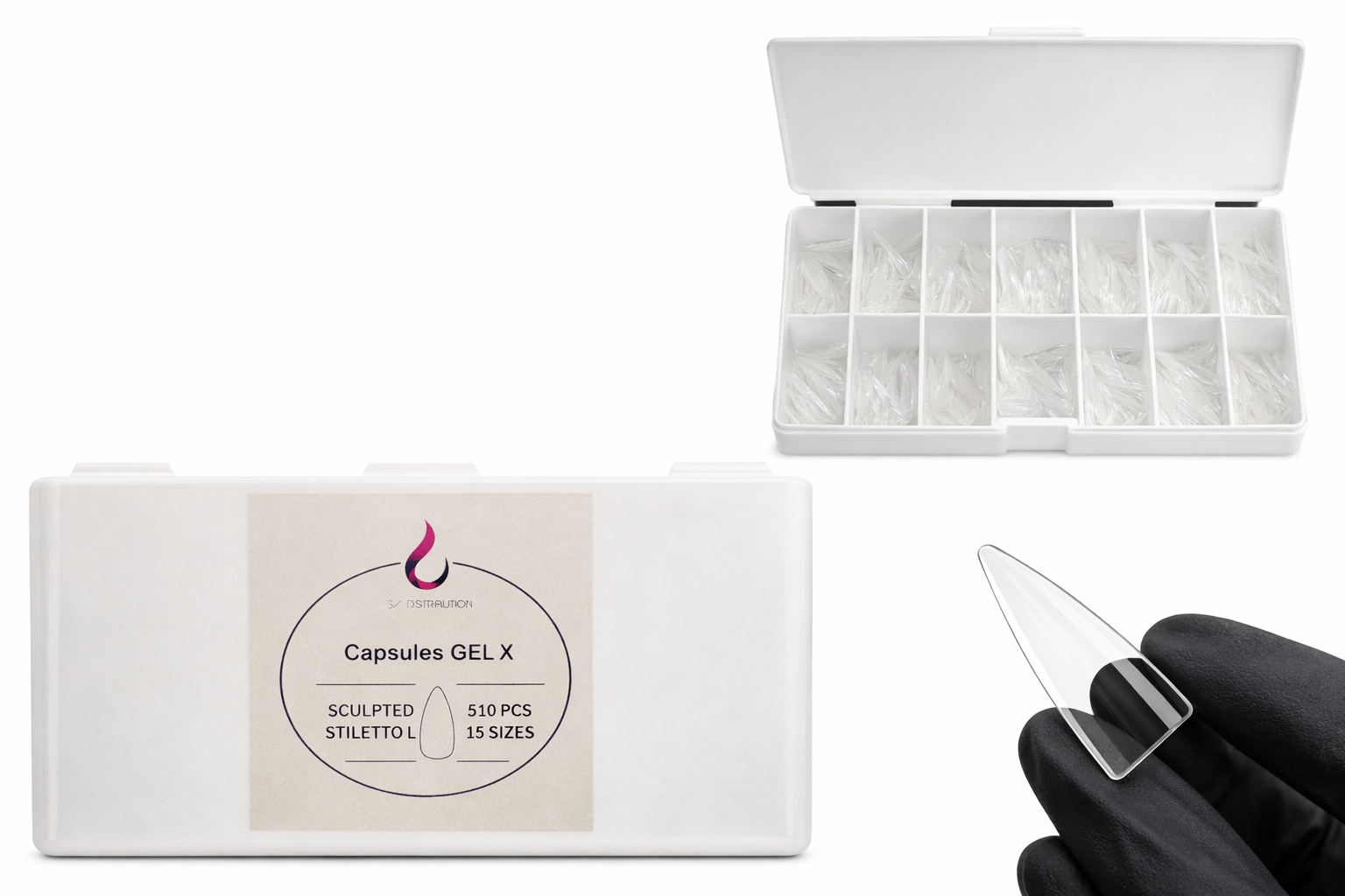 Capsules professionnelles transparentes idéales pour la technique Gel-x et pose américaine.