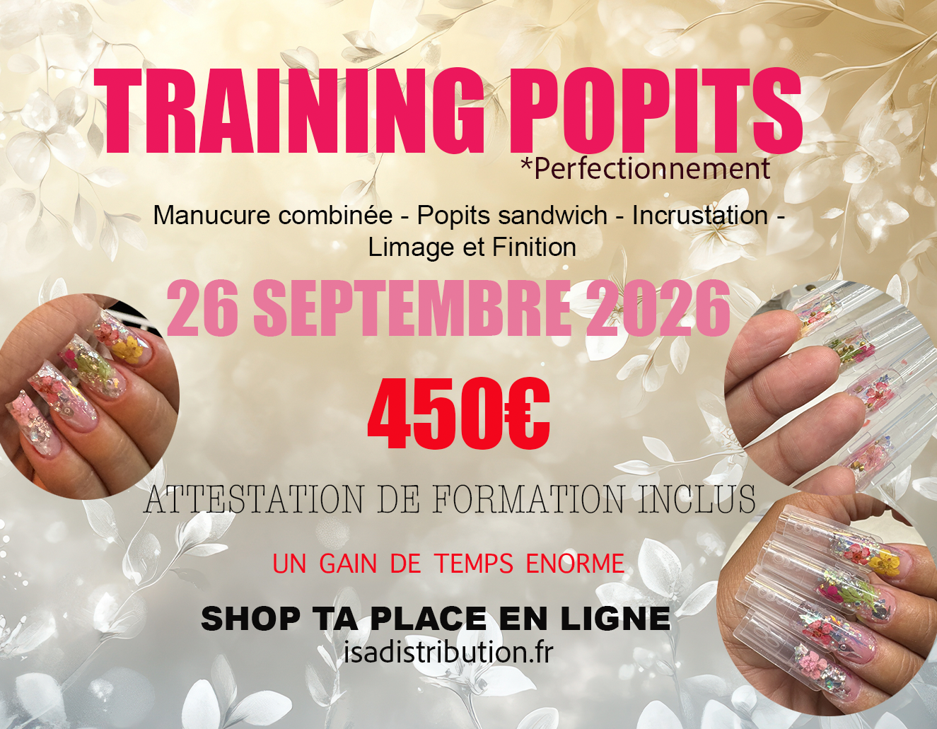 Formatrice : Isabelle -L Gérante et fondatrice de la gamme Isa distribution 18 ans d’expérience professionnelle en prothèsie ongulaire , + de 2000 personnes formées au top niveau .