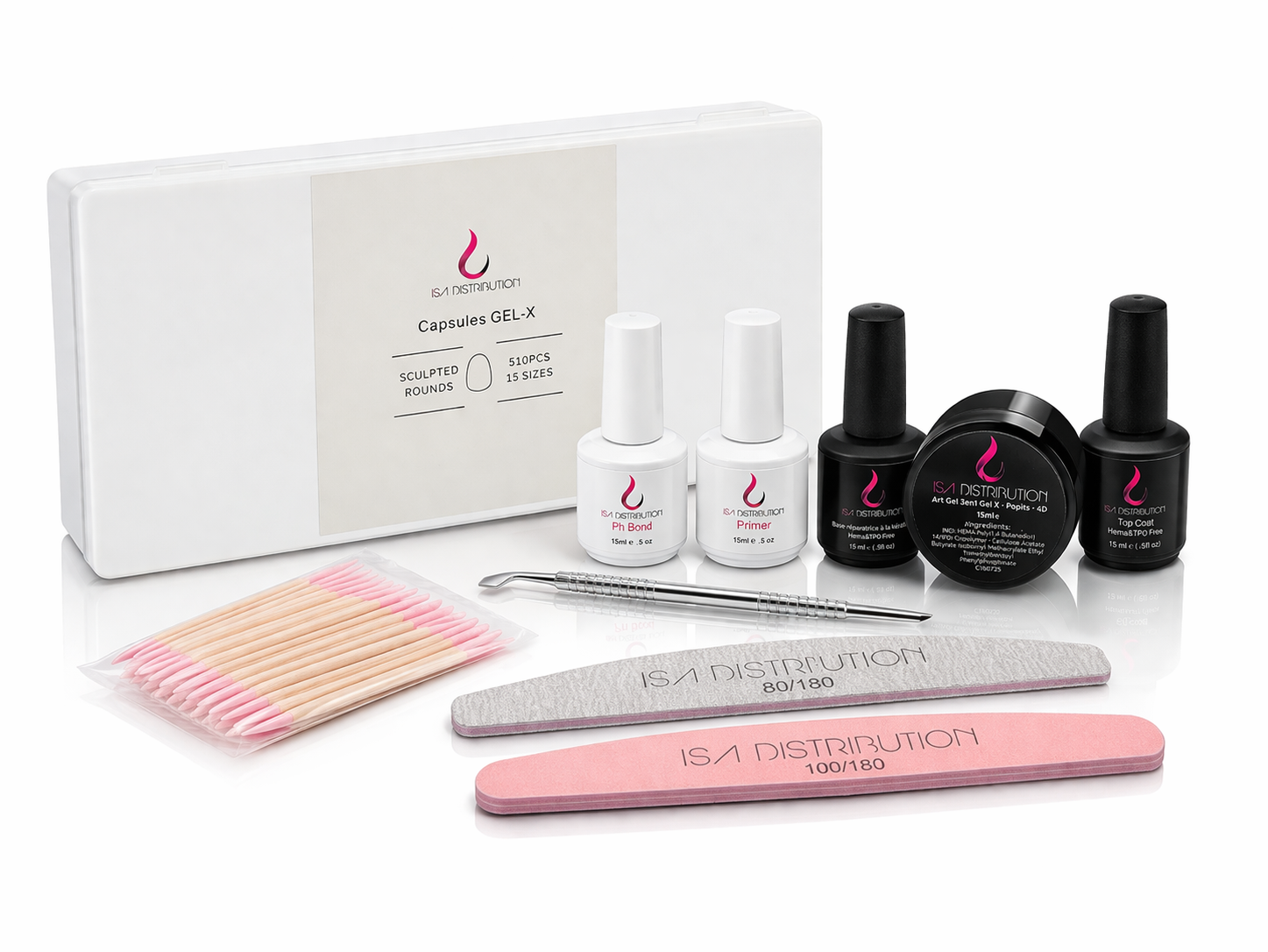 Obtenez une pose professionnelle rapide , solide et élégante avec le kit expert gel x ISA DISTRIBUTION Conçu pour les prothésistes angulaires et passionnées exigeantes , ce kit complet contient tout le nécessaire pour réaliser des extensions d’ongles parfaites avec la technique Gel-x